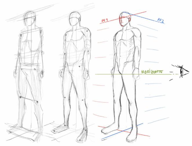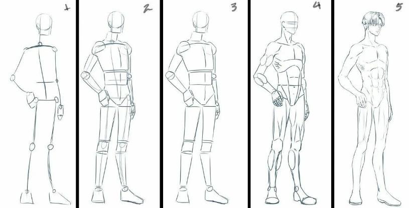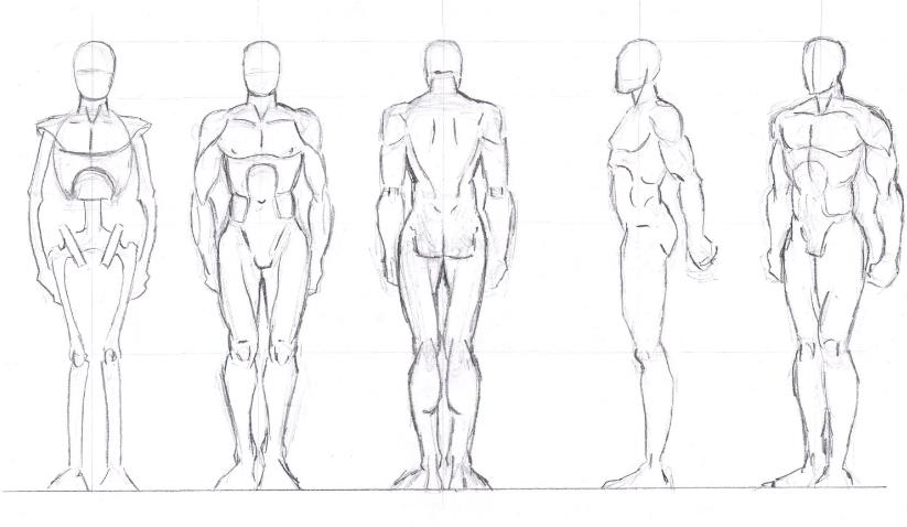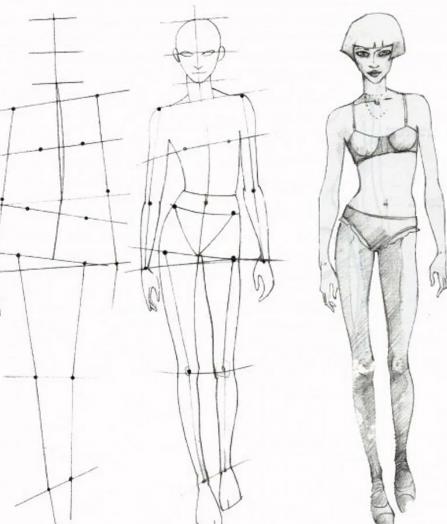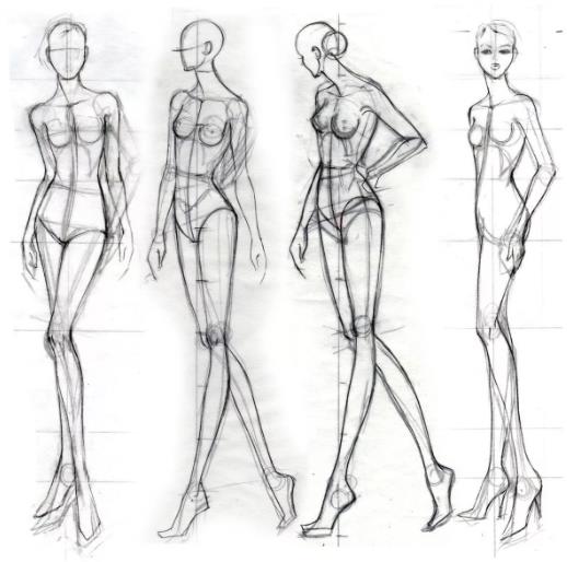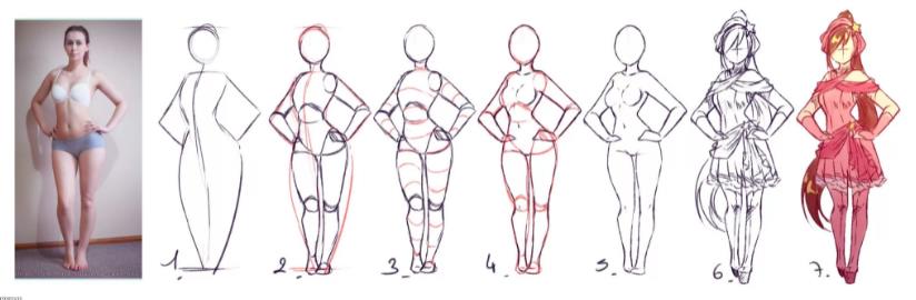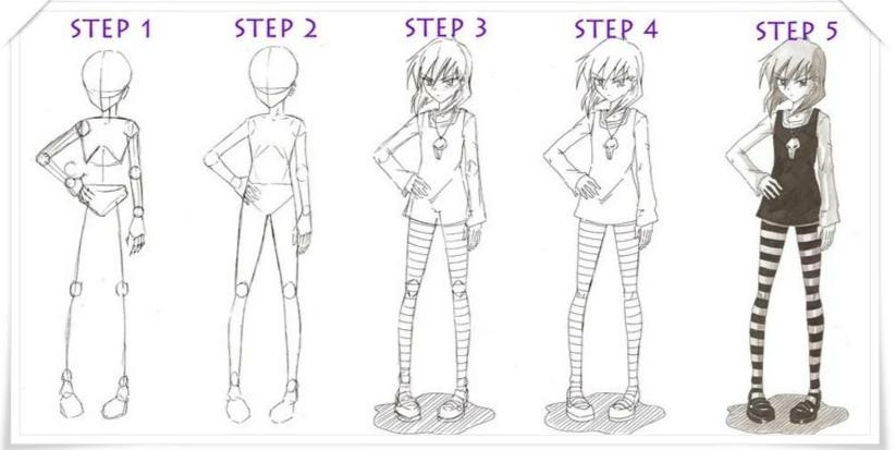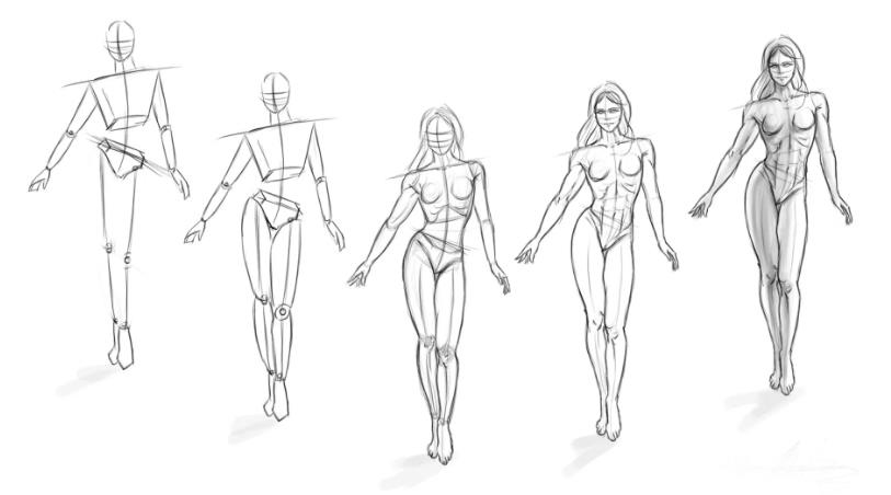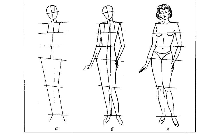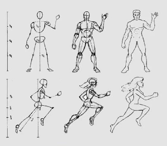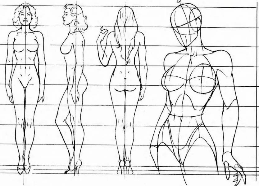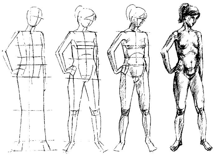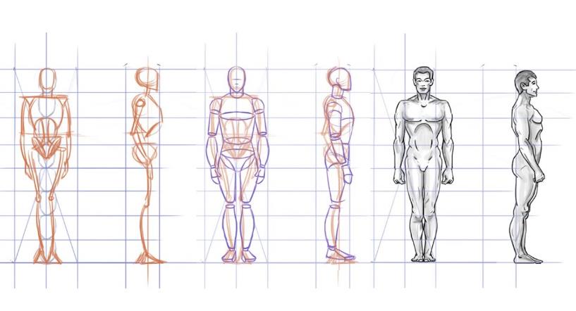 Вам важно научиться соблюдать пропорции, а для этого нужно расчертить сетку, как это показано на многих рисунках. Так вы сразу поймете, как нарисовать человека в полный рост.