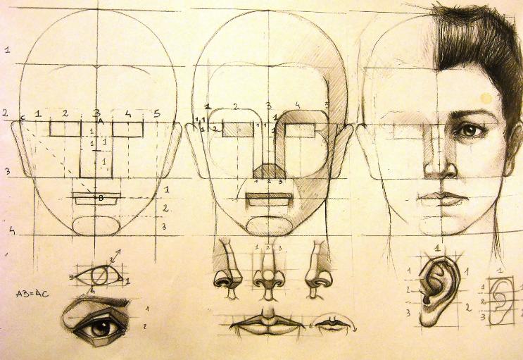 Как видите, нарисовать лицо человека не так уж и сложно. Нужно сделать разметку, намечая центральные линии. А затем обозначить место нахождения глаз, рта, носа. Так, шаг за шагом вы научитесь изображать лицо любого человека.
