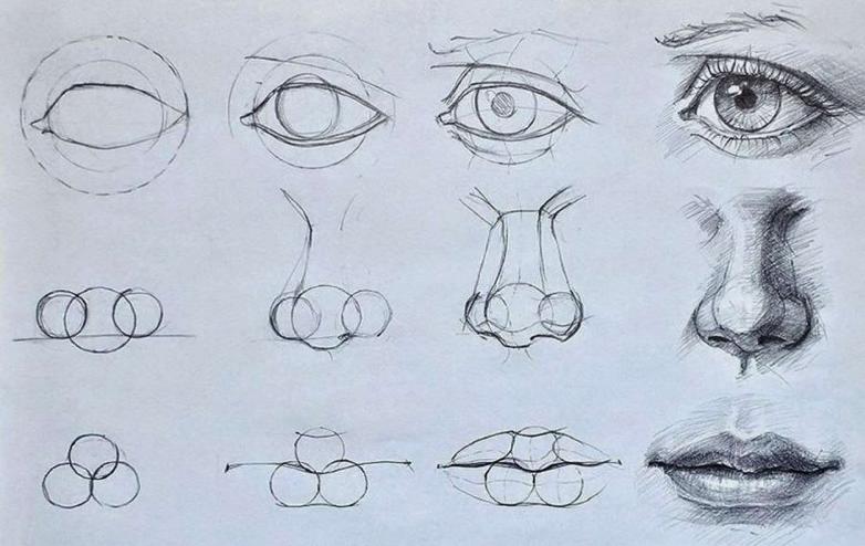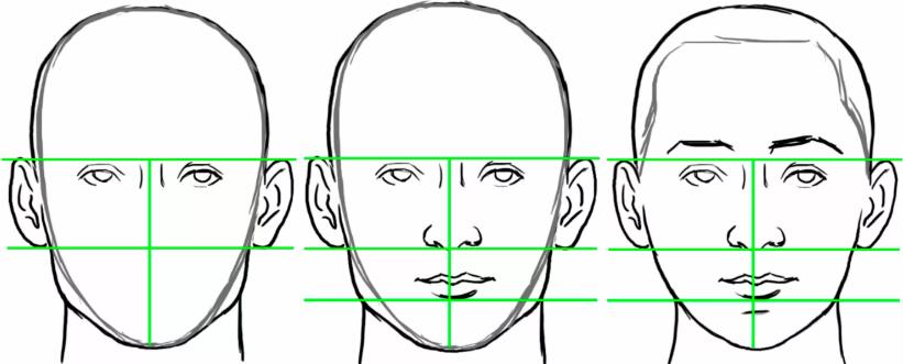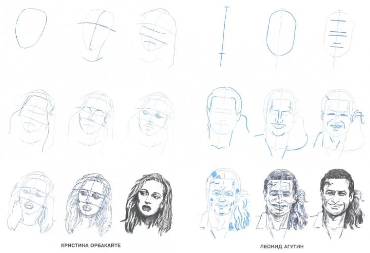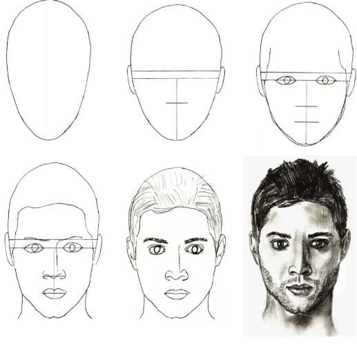 Как видите, нарисовать лицо человека не так уж и сложно. Нужно сделать разметку, намечая центральные линии. А затем обозначить место нахождения глаз, рта, носа. Так, шаг за шагом вы научитесь изображать лицо любого человека.